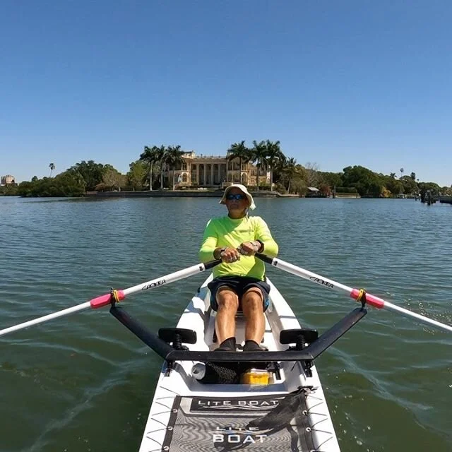 Back rowing in Sarasota and we met this fine gentleman out on a row. He was in a beautiful hand built training shell. We look forward to many rows with him in the future!!