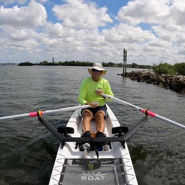 We had a dedicated rower fly in from Oklahoma City to demo row the LiteBoats. Not only did he travel a great distance, he rowed as a tropical depression was passing by. He said it was perfect as it’s always windy where he rows!